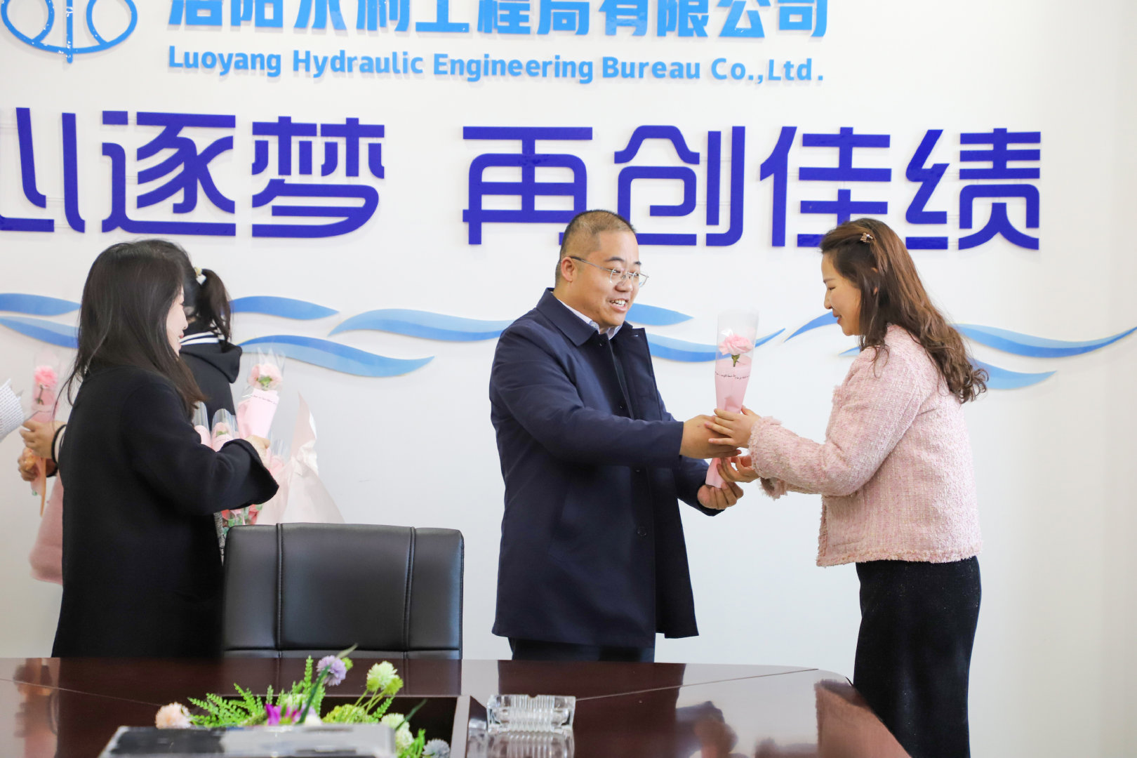 陽春三月春意濃,人面桃花相映紅,第114個(gè)“三八”婦女節(jié)如期而至,為充分調(diào)動女職工工作積極性、主動性和創(chuàng)造性,增強(qiáng)女職工的向心力和凝聚力,3月8日上午,集團(tuán)公司李東坤等領(lǐng)導(dǎo)到中共洛陽水利工程局有限公司委員會(以下簡稱“公司黨委”)為女職工送上鮮花和節(jié)日美好祝福。